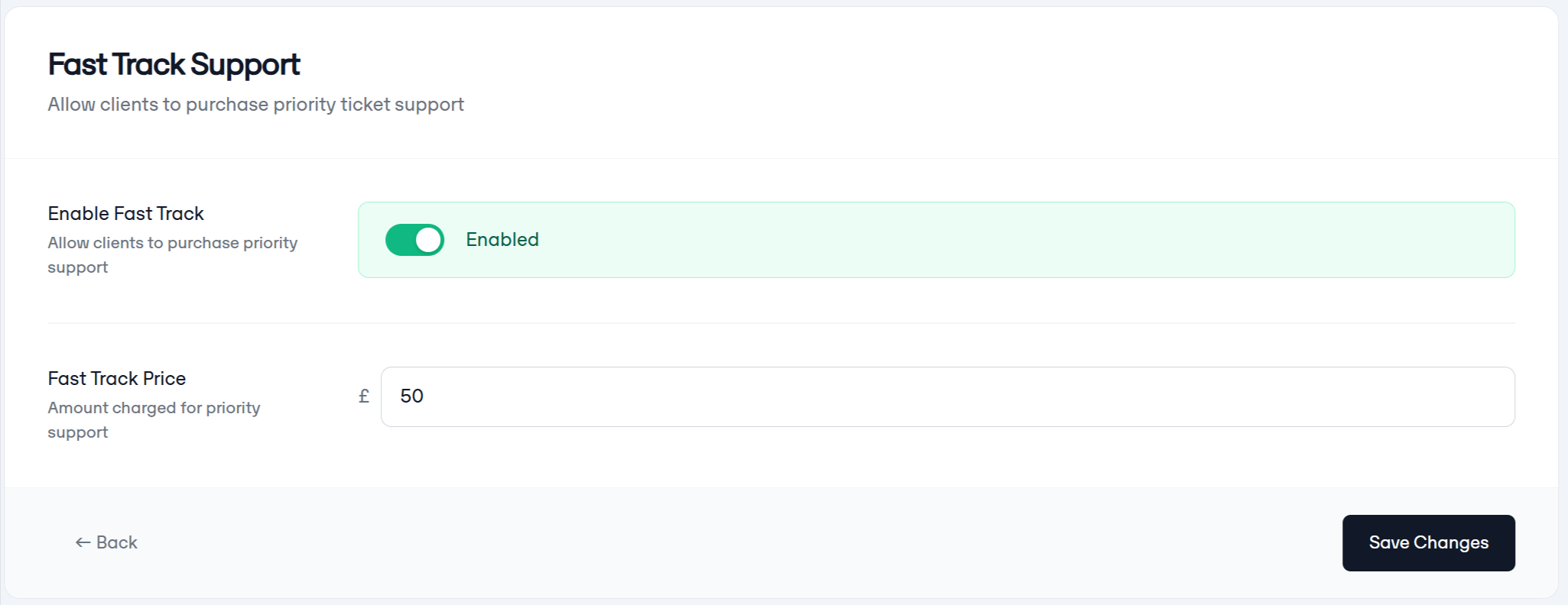 Fast Track is a paid upgrade for priority support. Clients pay for an invoice to enable it.